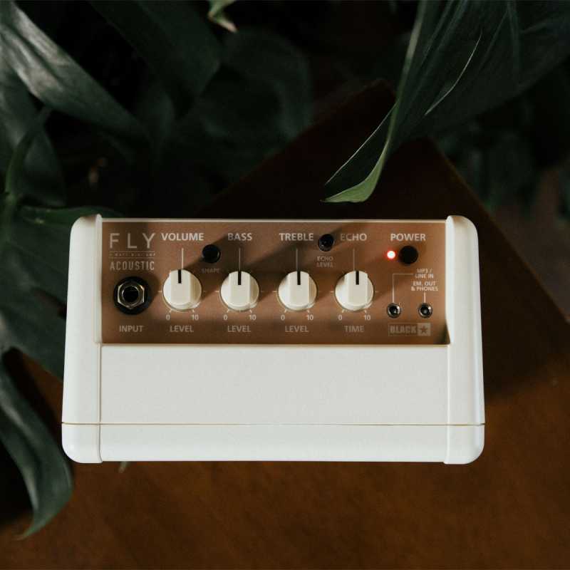 Amplificatore portatile di chitarra acustica Fly 3 Acoustic. Control Shape. EQ (Bass e Treble)). Effetto echo digitale. Ingresso ausiliare per Cd o Mp3. Uscita per auricolari. Uscita per altoparlante esterno. Altoparlante da 3 " Controlli (Volume, Shape, Bass, Treble, Ech Level, Echo Time, MP3/Line Input, Speaker Emulated Output, Input). Alimentazione con pile o alimentatore (Blackstar FLY3 Power Supply) opzionale. Dimensioni: 170 x126 x 102 mm. Peso: 0,9 Kg.