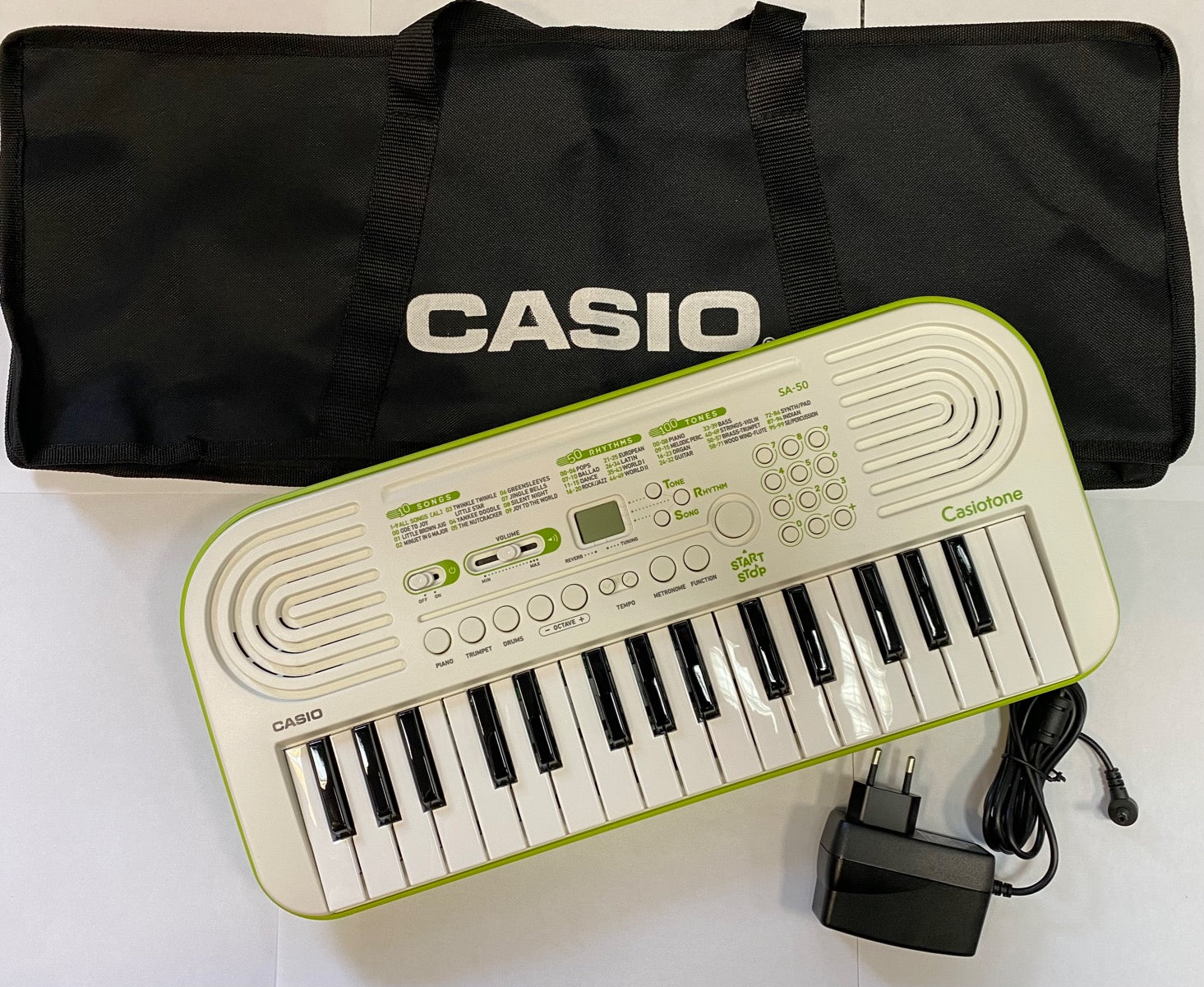 Casio SA-50 Tastiera con 32 Tasti Mini White/Lime Green con borsa e alimentatore