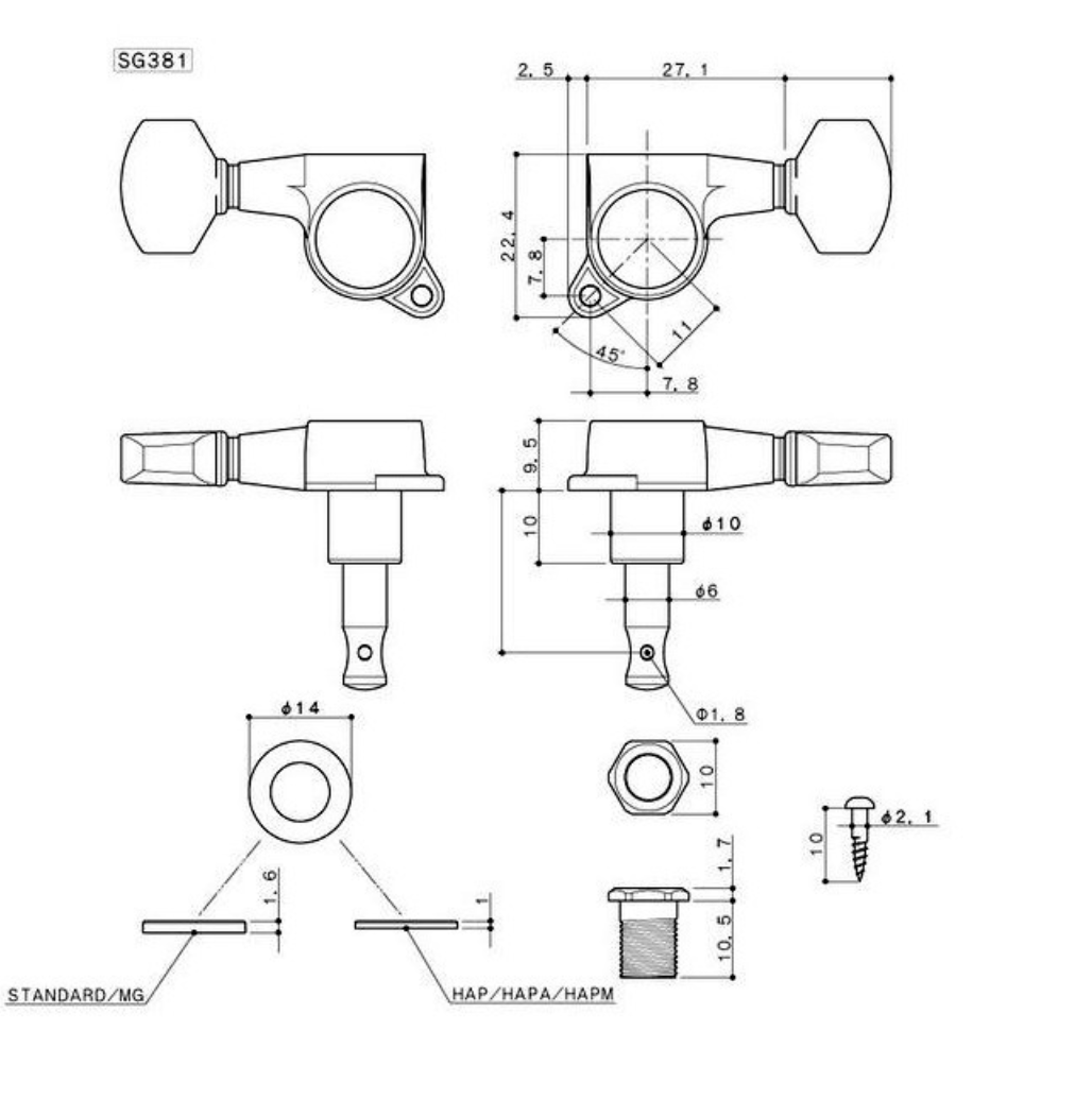 GOTOH SG381-07-CK-L6 Set di Meccaniche per Chitarra Elettrica, L6, Cosmo Black
