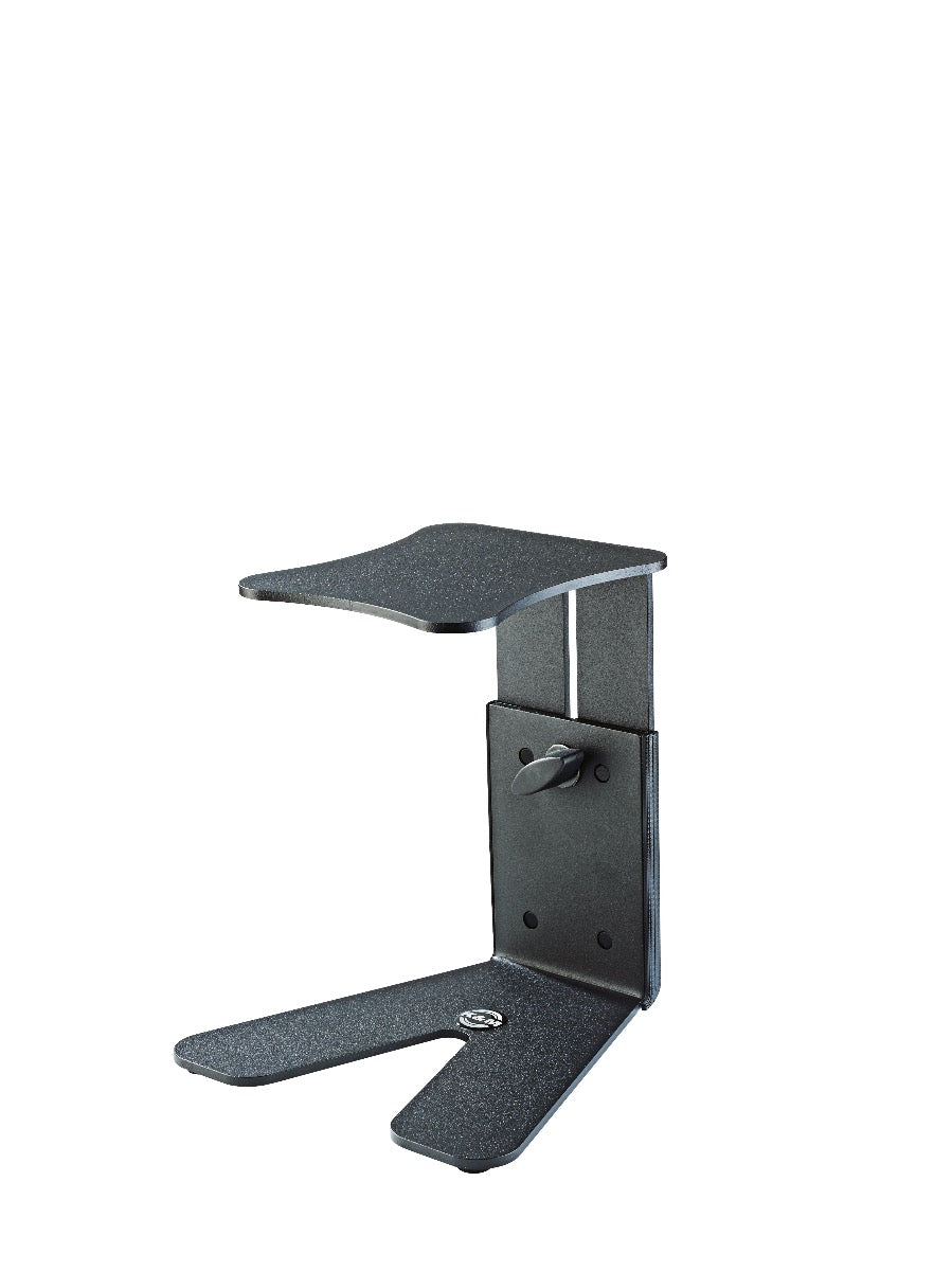 Attractive table stand for studio monitors and loudspeakers. The height adjustment is variable between 167 and 254 mm. 4 rubber pads each for floor and tray provide for stability and noise filtration. The recommended max. load is 15 kg. The support area (tray) dimensions are 150 x 170 mm.