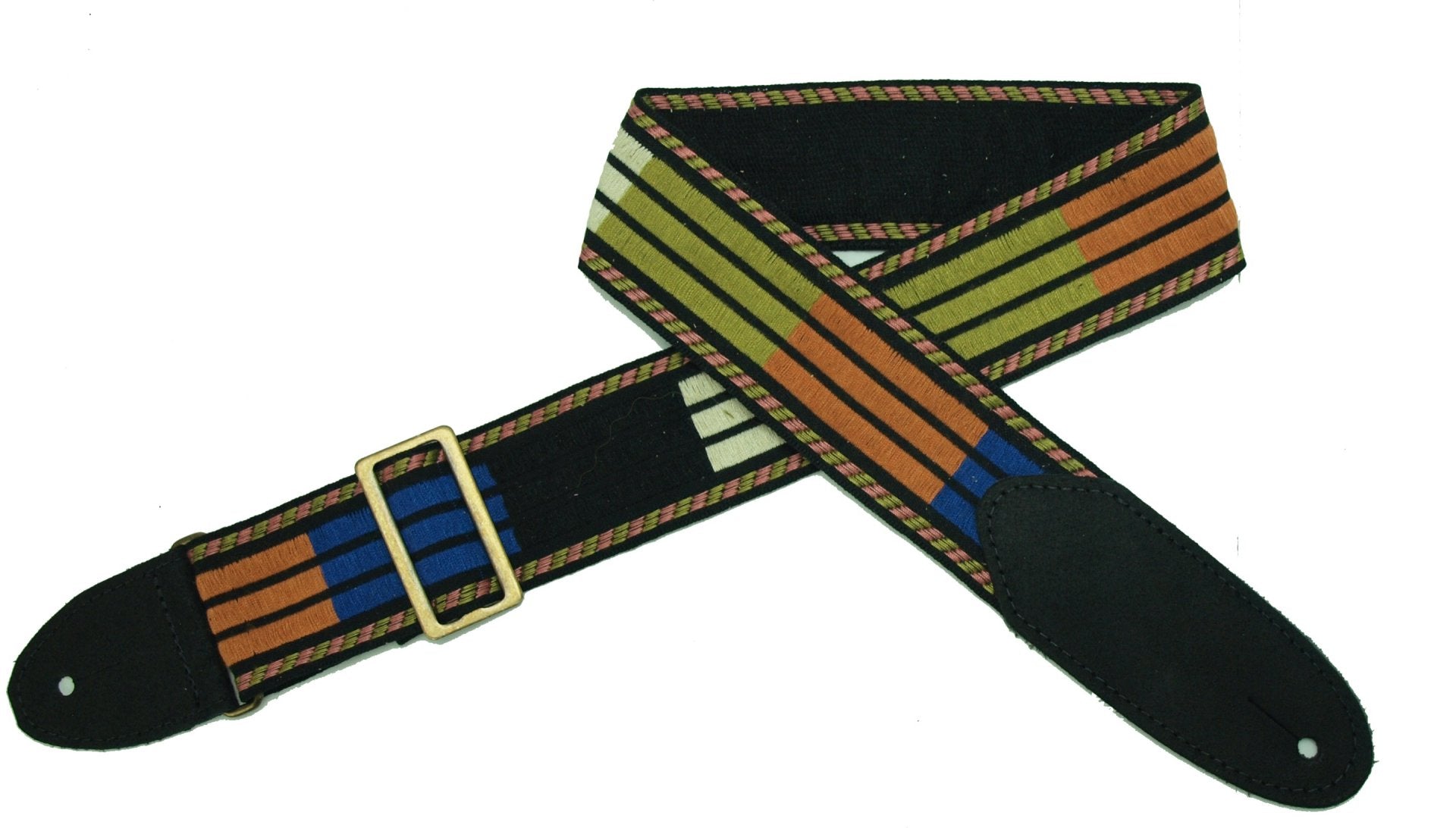 Tracolla per chitarra in cotone con terminali in pelle scamosciata invecchiata
