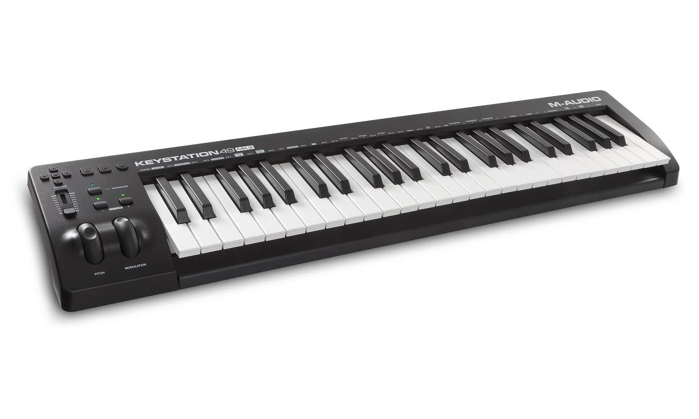M-AUDIO Keystation 49 MK3 Caratteristiche principali – 49 tasti synth action sensibili alla dinamica – Connessione USB-MIDI – 3 pulsanti di trasporto, 5 pulsanti direzionali, slider volume, manopole pitch e modulation ergonomiche, pulsanti octave/transpose – Ingresso per pedale sustain – Alimentazione tramite bus USB – Design compatto che si adatta perfettamente in ogni situazione live e studio – Compatibilità nativa su PC e MAC – Utilizzabile con dispositivi iOS tramite connettore Apple Lightning to USB Camera Adapter (non incluso) – Dimensioni: 822 x 189 x 68 mm – Include suite di software professionali: AIR Mini Grand, AIR Velvet, AIR Xpand!2, Ableton Live Lite, Pro Tools , First M-Audio Edition, Skoove Trial Subscription, Melodics Trial Subscription, Touch Loops 2GB sound library Dimensioni: 822 x 189 x 68mm Peso: 2,1kg