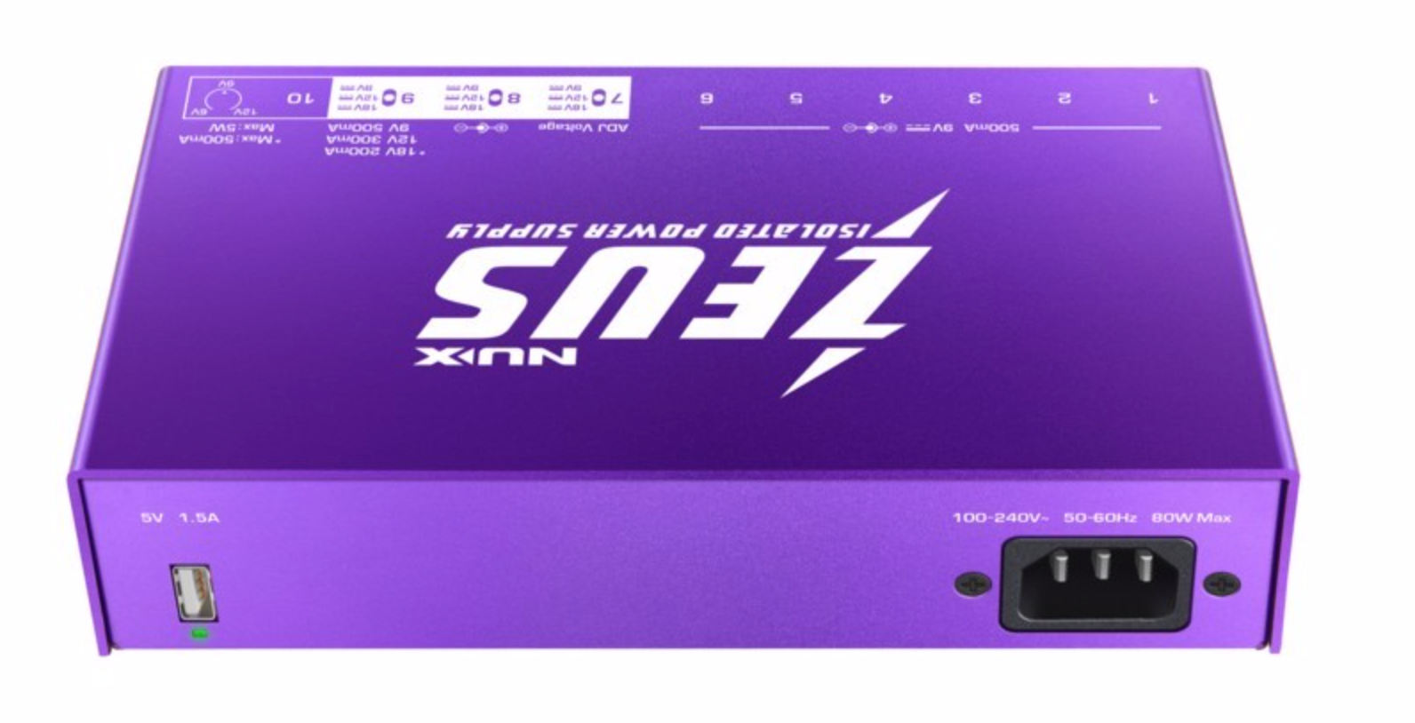 ZEUS è un alimentatore affidabile, silenzioso, leggero, universale, ad alta potenza e completamente isolato, concepito da NUX per dare ai musicisti la soluzione definitiva per catene di pedali prive di ronzio. ZEUS dispone di 10 alimentatori CC isolati ad alta potenza. È dotato di 10 trasformatori di alimentazione switching isolati per offrire una sorgente pulita e stabile ai vostri pedali. I chitarristi moderni amano gli effetti digitali, per questo ZEUS ha 3 uscite regolabili (9v/500ma | 12v/300ma | 18v/200ma) e 1 uscita modificabile (6v~9v~12v). Zeus è in grado di erogare una corrente sostanzialmente maggiore gestendo una gamma molto più ampia di tensioni di ingresso, più efficiente rispetto agli alimentatori lineari. Per i musicisti che affrontano concerti e tour, Zeus dispone di una porta USB per la ricarica dei dispositivi mobili. L'alimentazione CA universale di Zeus consente di lavorare in tutto il mondo senza alcun errore di corrente alternata.