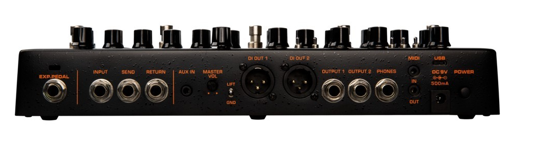 MIDI In/Out, EXP Pedal In, SEND/RETURN, Stereo balanced DI Out, MASTER VOL pot