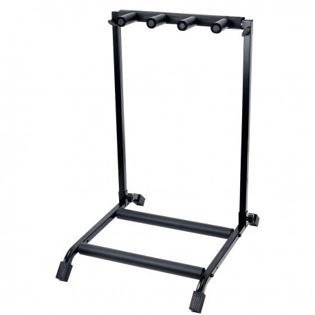 Supporto per 3 chitarre pieghevole, in metallo con rifiniture in gomma antigraffio. Leggero ma stabile grazie alle staffe di rinforzo sul telaio, ideale per essere trasportato ovunque col minimo sforzo e ingombro.