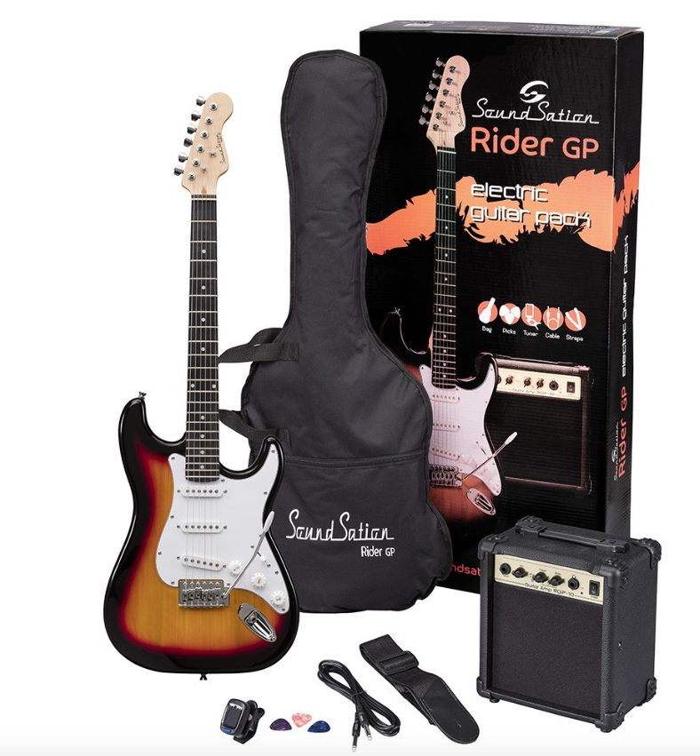 Vuoi cominciare il tuo viaggio nel mondo della chitarra elettrica? Rider GP è il modo migliore per farlo. Il guitar pack include una chitarra Soundsation Rider-GP, un combo RGP-10 vintage style, un accordatore a clip per rimanere sempre accordati senza bisogno di cavi, una borsa, 3 plettri, cavo e tracolla. Tutto quello di cui hai bisogno è qui: ora tocca a te!