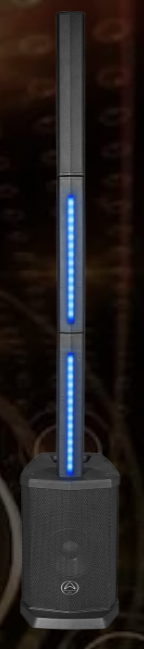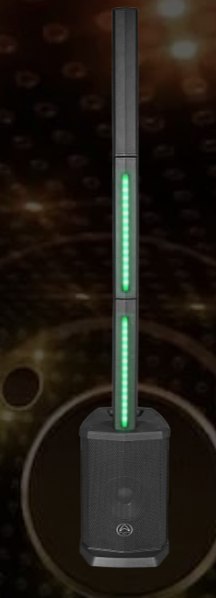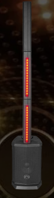 Sistema a colonna 2 vie amplificato composto da 4 driver medioalti da 2.5" montati a colonna e 1 subwoofer con driver da 8" – 100 W – 40-20.000 Hz – 106 dB Max SPL @ 1 m – led integrati (escludibili) nella colonna dei medioalti – player interno USB e SD card – ricevitore Bluetooth integrato con TWS per la riproduzione in stereo da una coppia di diffusori – mixer interno a 3 canali con 4 ingressi linea e 2 ingressi microfonici tutti con regoilazione del volume indipendente e 2 canali con regolazione degli effetti – master generale – funzione Bass Boost per enfatizzare le basse frequenze – ingressi bilanciati – uscita XLR – cabinet in abs – telecomando in dotazione